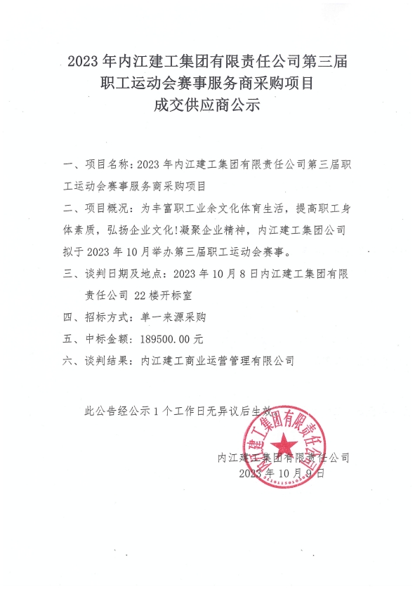 2023年內(nèi)江建工集團有限責(zé)任公司第三屆職工運動會賽事服務(wù)商采購項目 成交供應(yīng)商公示