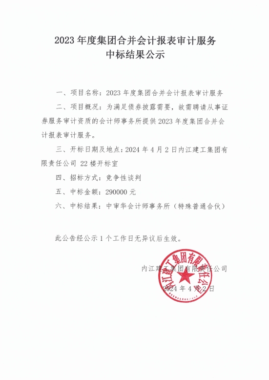 2023年度集團(tuán)合并會(huì)計(jì)報(bào)表審計(jì)服務(wù) 中標(biāo)結(jié)果公示